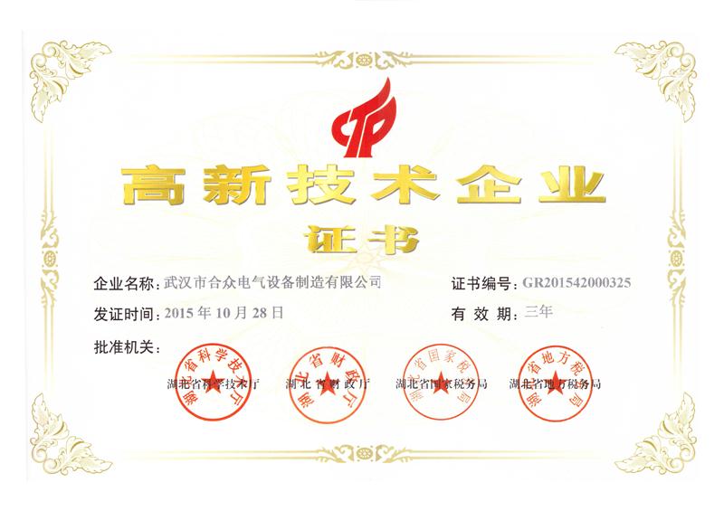 • 武漢合眾電氣榮獲武漢高新技術企業證書